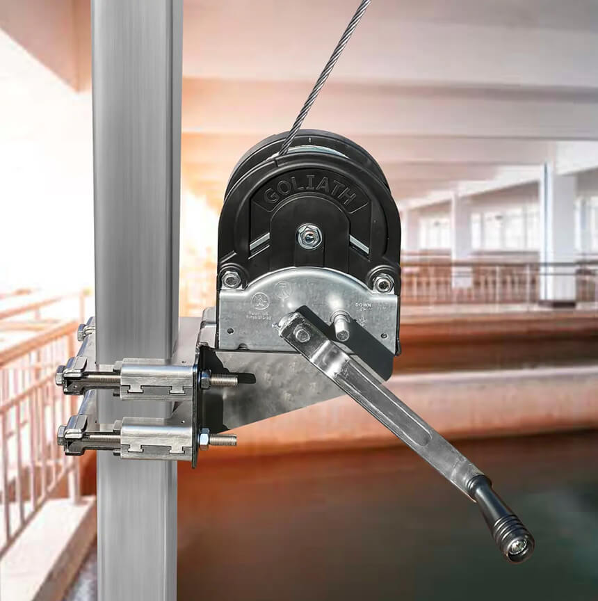 Lifting systems used in wastewater applications are subject to heavy corrosion, which impacts the equipments (winches, cables, pullyes, etc) and can jeopardise the safety of users.