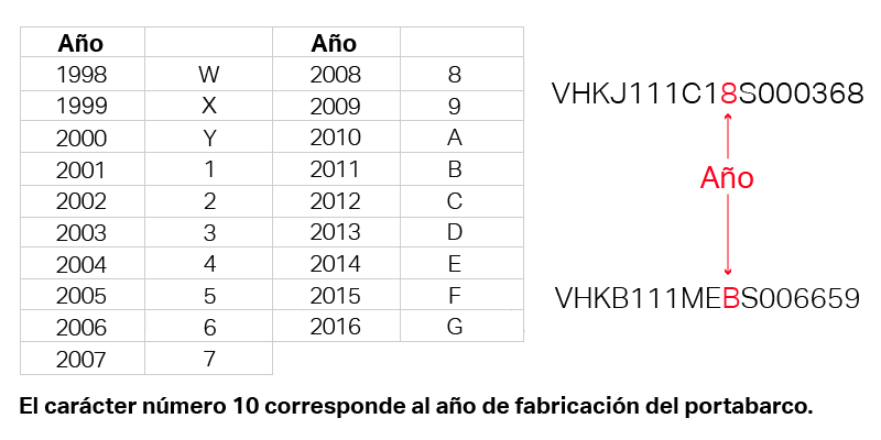 Para el fabricante RSA, también es necesario determinar el año de fabricación, que está representado por los números XX que se seleccionarán en los criterios de clasificación de la página opuesta.
