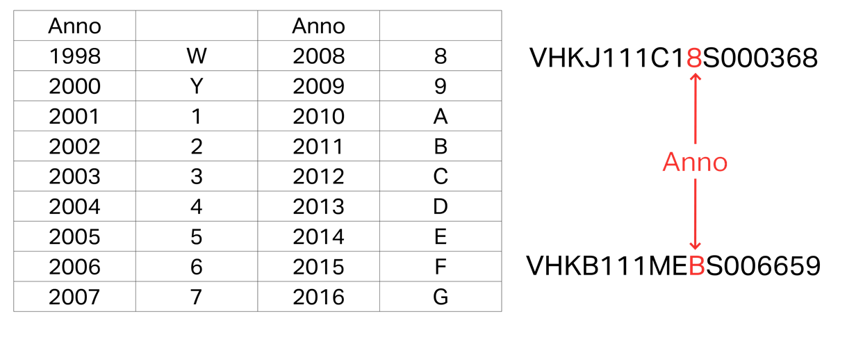 Per il produttore RSA è inoltre necessario determinare l'anno di produzione, che è rappresentato dalle XX cifre da selezionare nei criteri di selezione nella pagina a fianco.