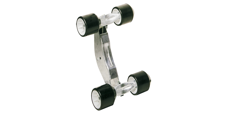 Rulli, boggie e componenti per il sistema di varo e alaggio destinato alla manutenzione del rimorchio porta barca.